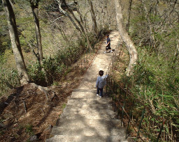 まだ階段は続きますが、心臓はバクバク、足はガクガク、頭はクラクラ・・・ 自信がなかったので 途中で引き返します。 この先にある生瀬の滝が見れず 残念でした。